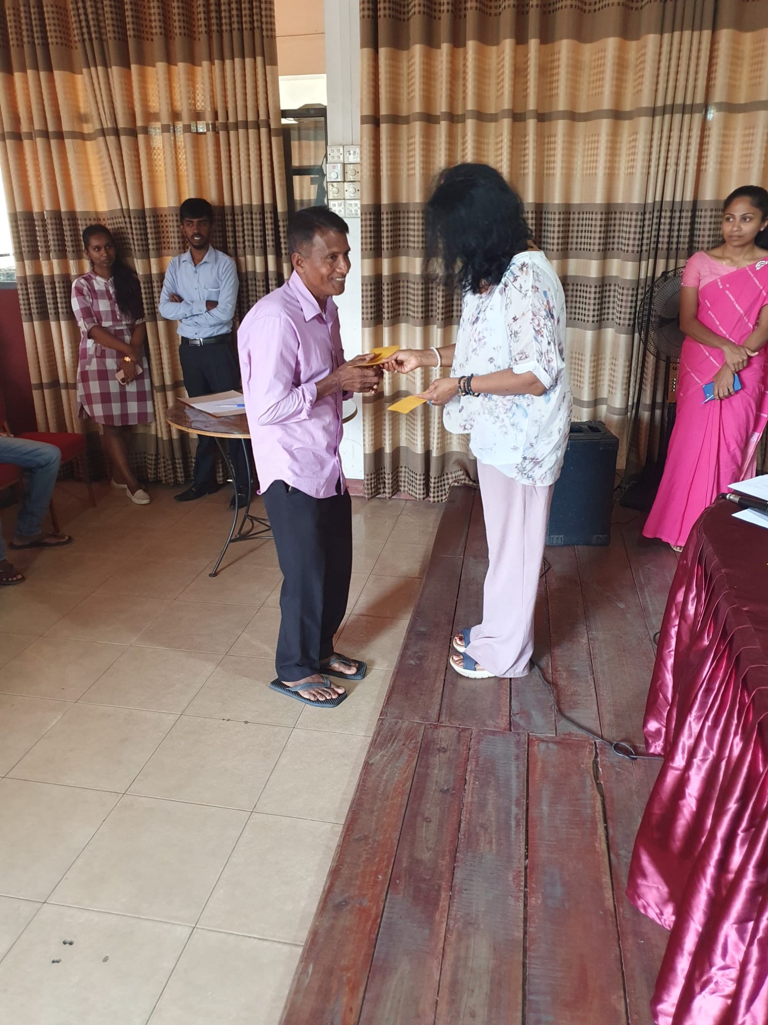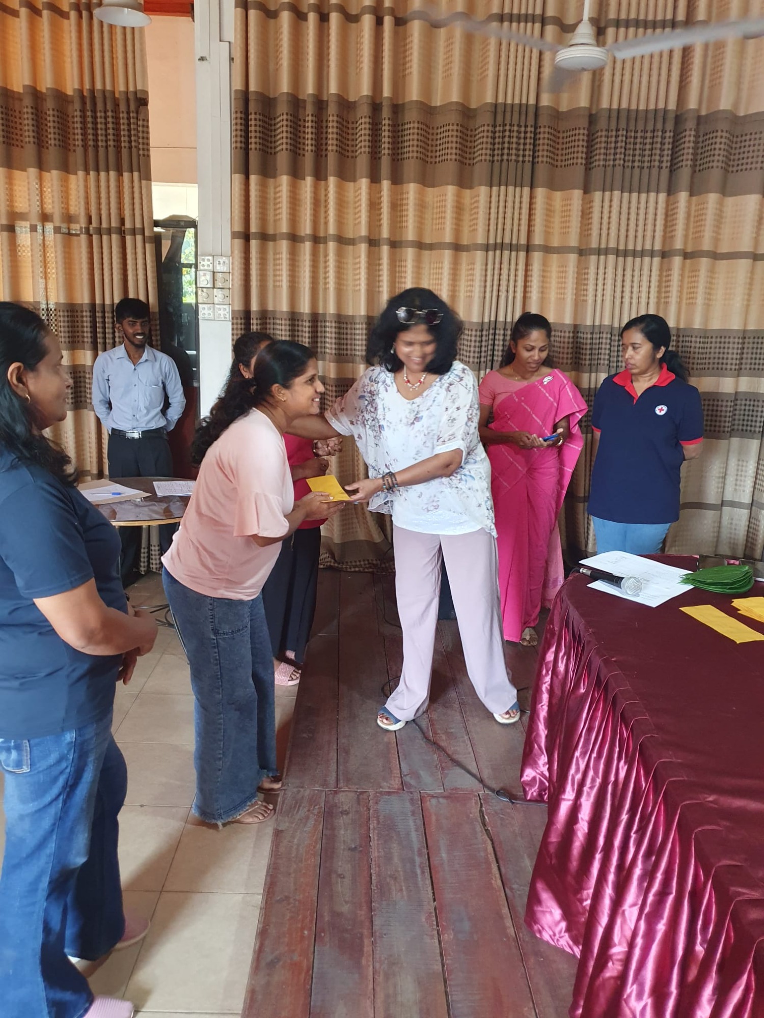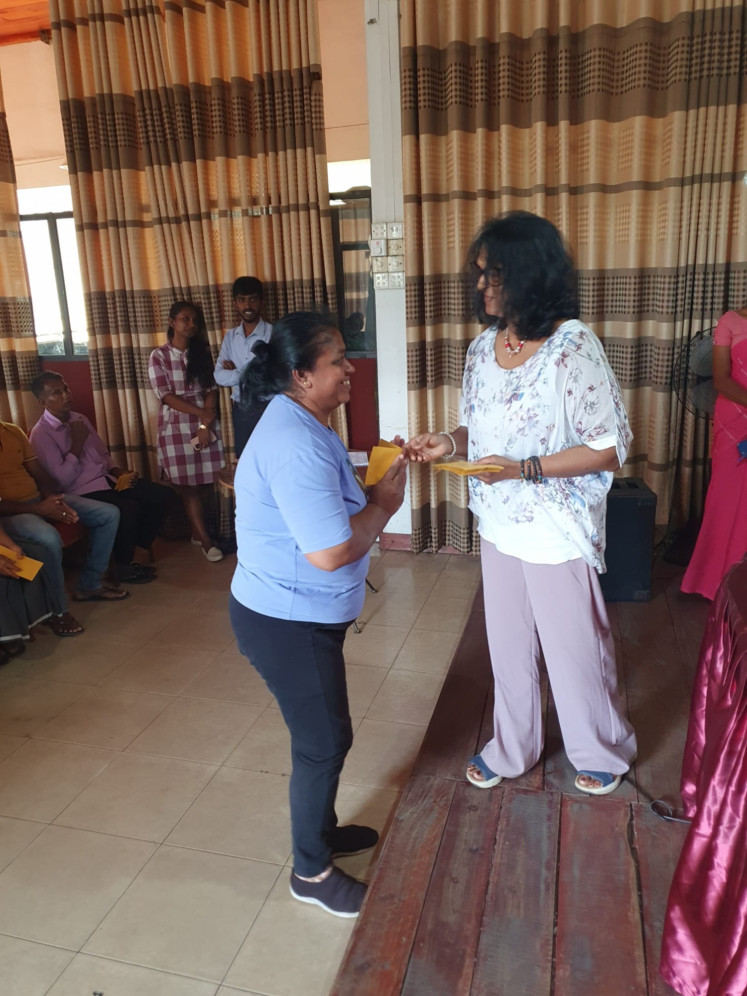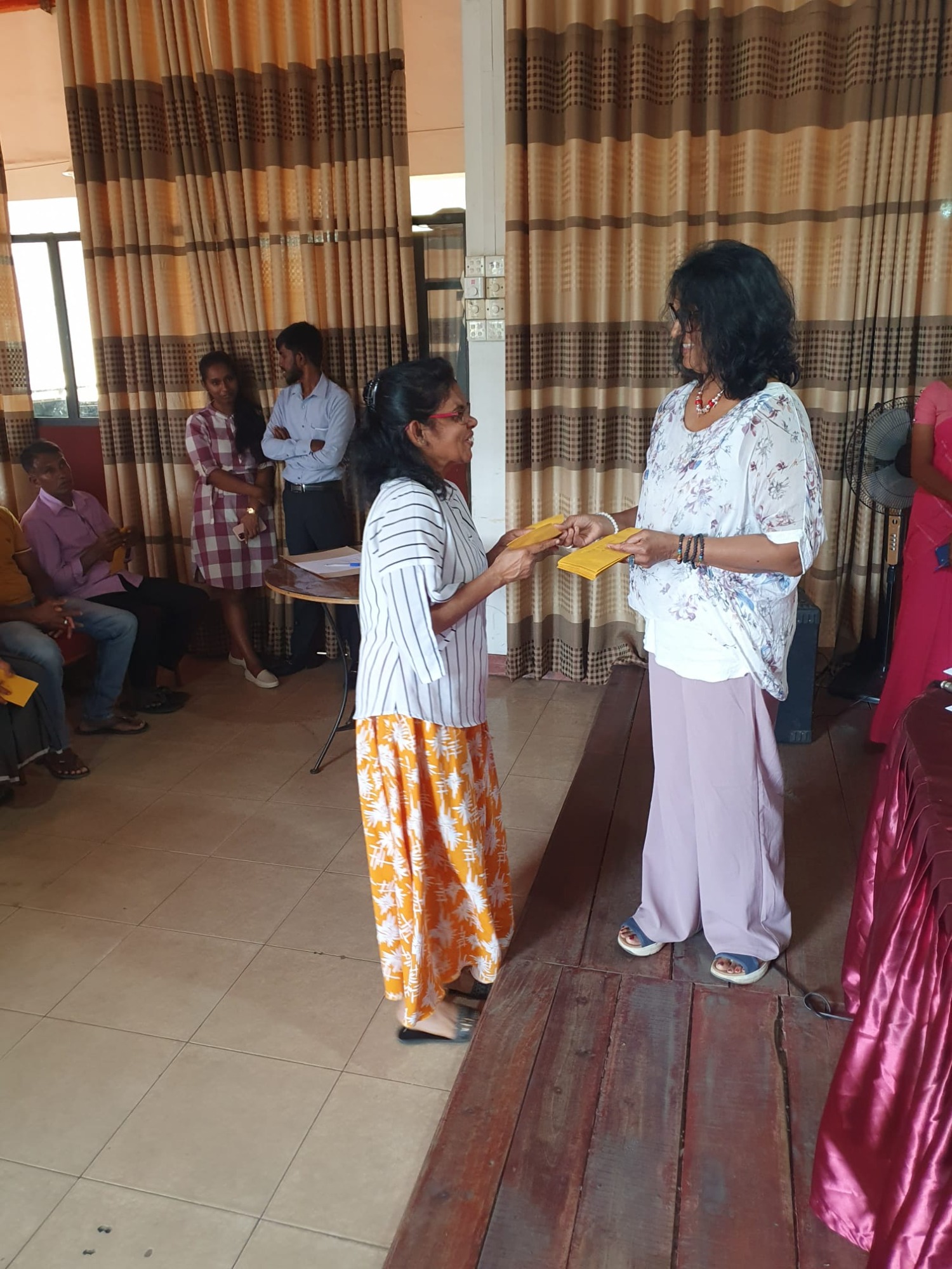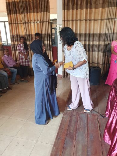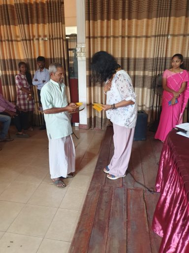 Durch die Überschwemmungen wurde die Kleinstadt Kegalla besonders getroffen. In Zusammenarbeit mit dem Roten Kreuz Sri Lanka hat die zweite Vorsitzende Anusha Lux Hilfe für mehr als 40 Familien gebracht. Da das Gebiet aufgrund der Flut noch immer eine schlechte Infrastruktur hat und ein Besuch vor Ort nur schwer möglich war, hat das Rote Kreuz besonders betroffene Familien in ein Zentrum gebeten. Hier wurden Ihnen von Frau Lux Geldbeträge ausgehändigt, damit die Familien die Dinge einkaufen können, die sie besonders benötigen.