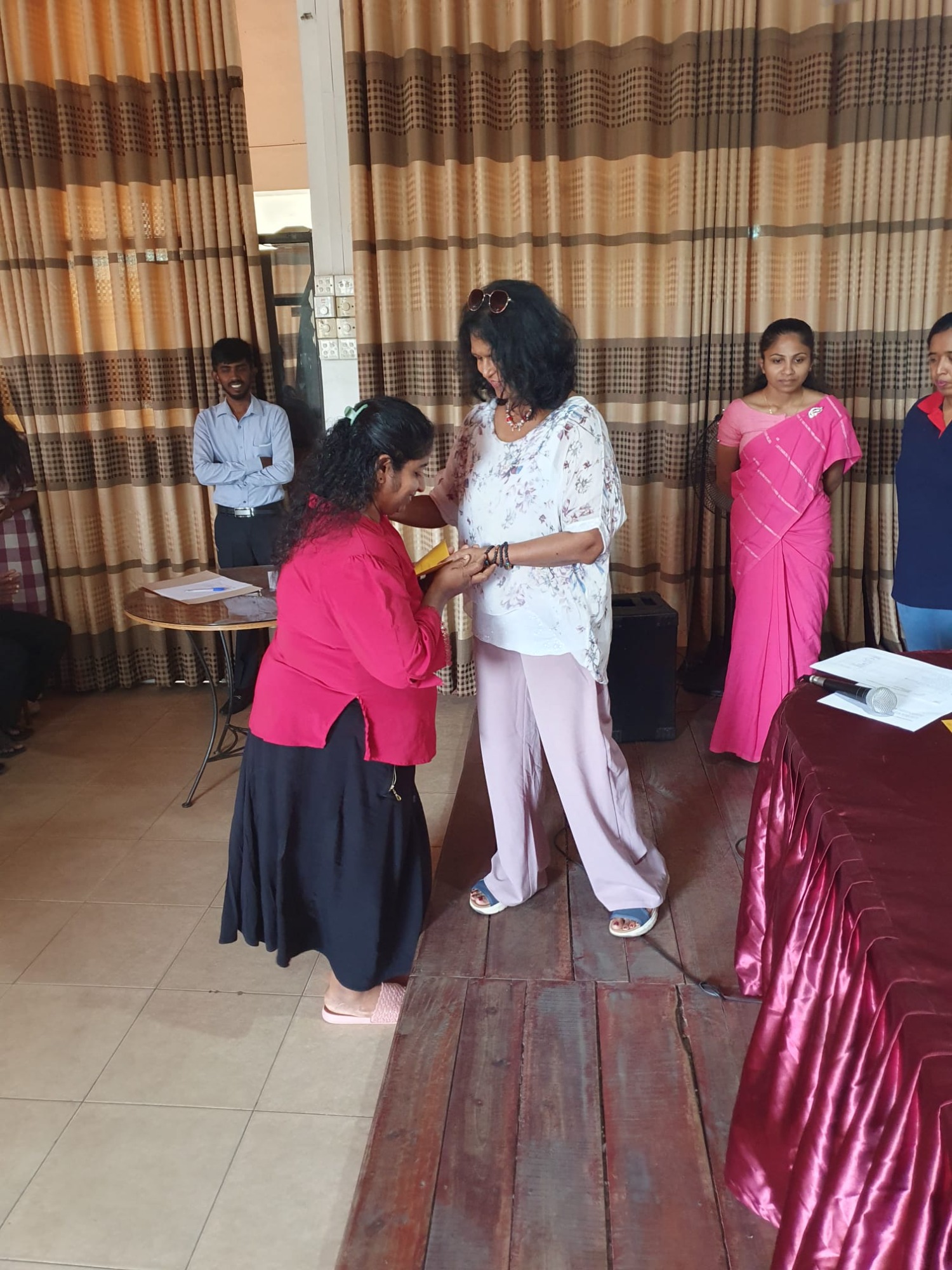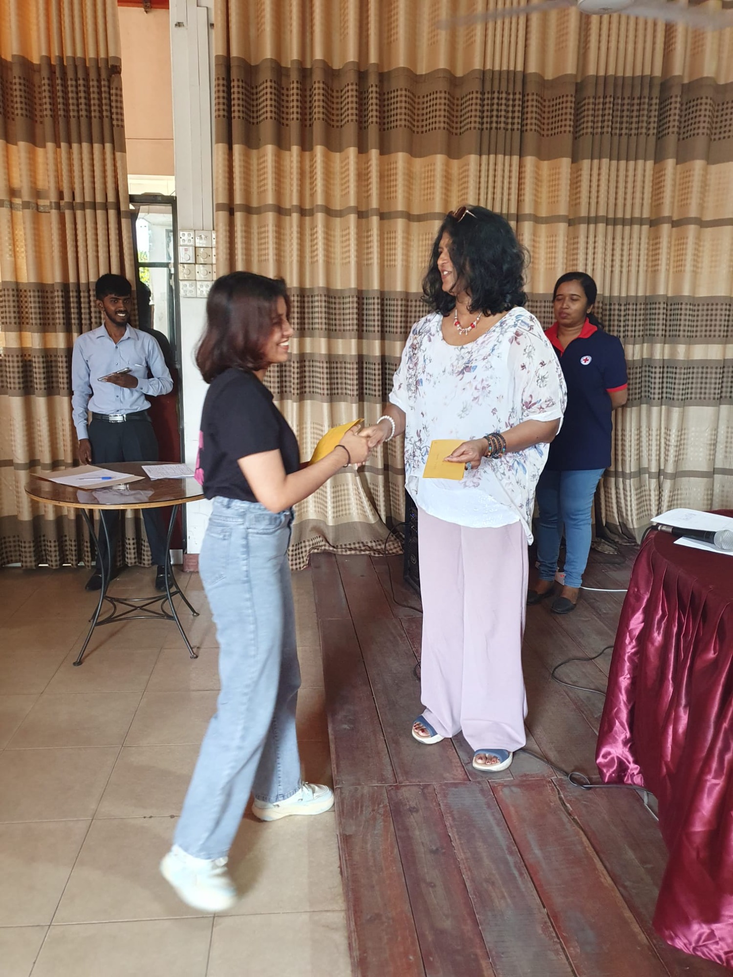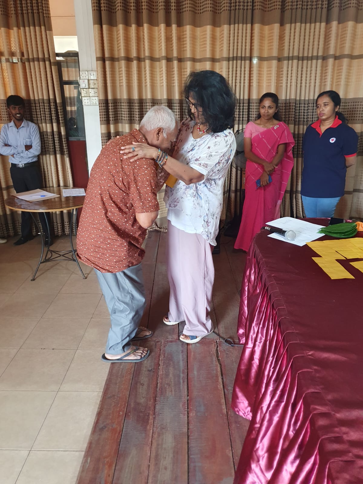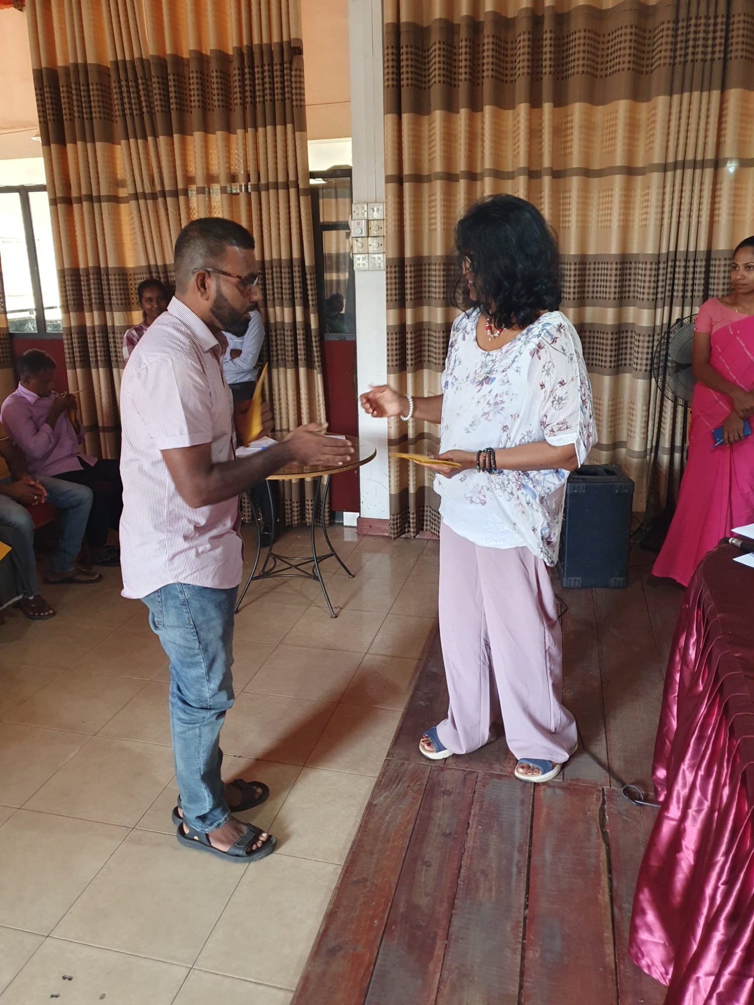 Durch die Überschwemmungen wurde die Kleinstadt Kegalla besonders getroffen. In Zusammenarbeit mit dem Roten Kreuz Sri Lanka hat die zweite Vorsitzende Anusha Lux Hilfe für mehr als 40 Familien gebracht. Da das Gebiet aufgrund der Flut noch immer eine schlechte Infrastruktur hat und ein Besuch vor Ort nur schwer möglich war, hat das Rote Kreuz besonders betroffene Familien in ein Zentrum gebeten. Hier wurden Ihnen von Frau Lux Geldbeträge ausgehändigt, damit die Familien die Dinge einkaufen können, die sie besonders benötigen.